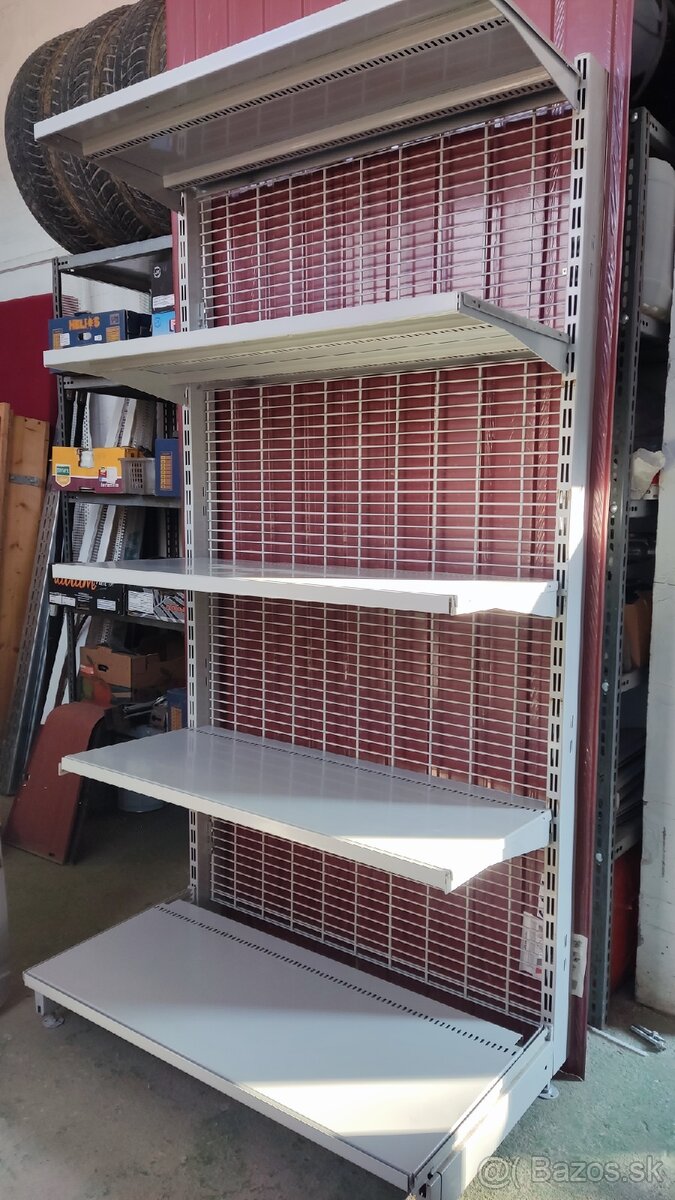 Predám obchodné regále 195x103x50, polica 100x45 5ks. Možnosť spájať vedľa seba, prípadne ako obojstranný regál.