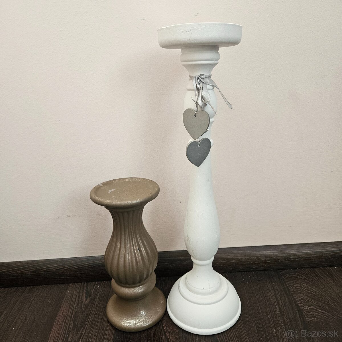 Predám dva svietniky, biely a hnedý, na hnedom mierne odretia,ale na tom mieste sa dáva sviečka.Pošta 4,70 €. Výška 40 a 21 cm.