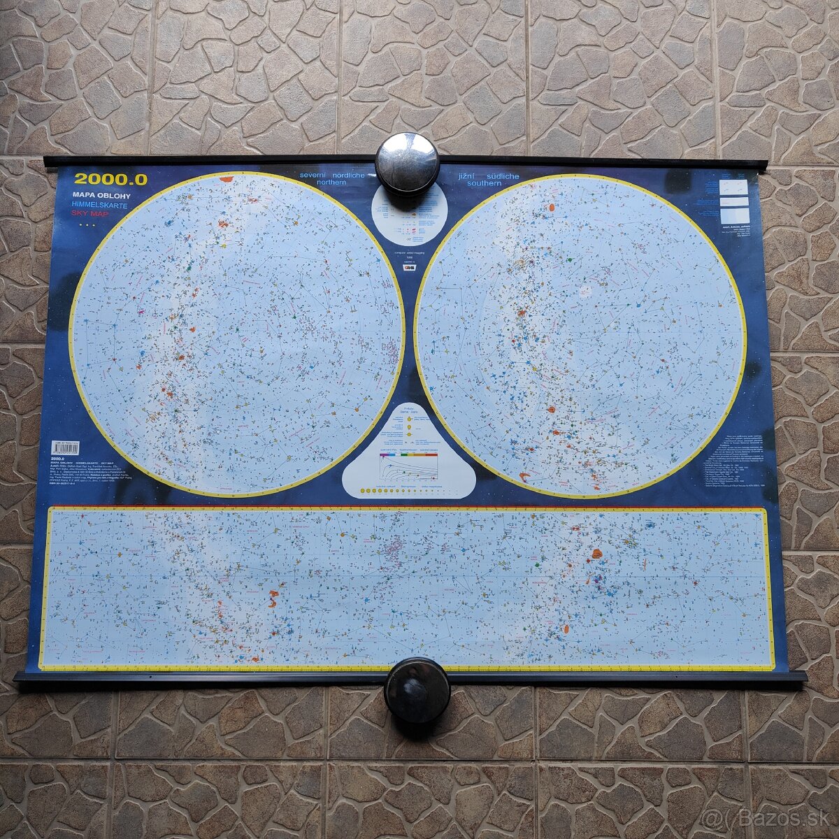 Hviezdna obloha 83x113cm, lamino plastové lišty nástenná mapa - nová, nikdy nepoužita. Osobný odber v Piešťanoch, cena 15 €.