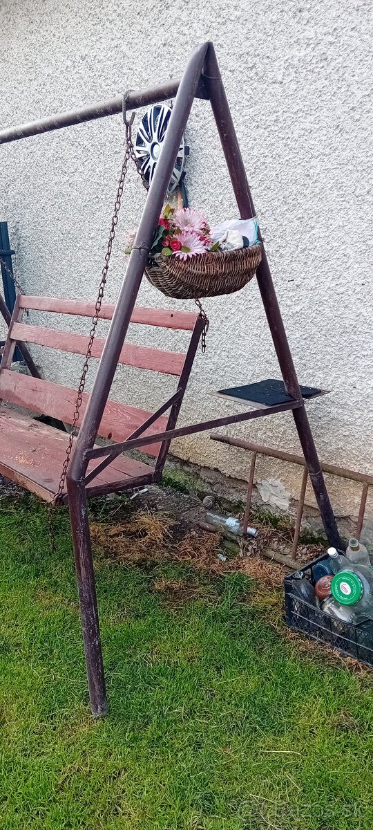 Predam zahradnu hojdacku vyrobena z lesenarskych rur dlzka 225cm vyska 185cm sirka 125cm