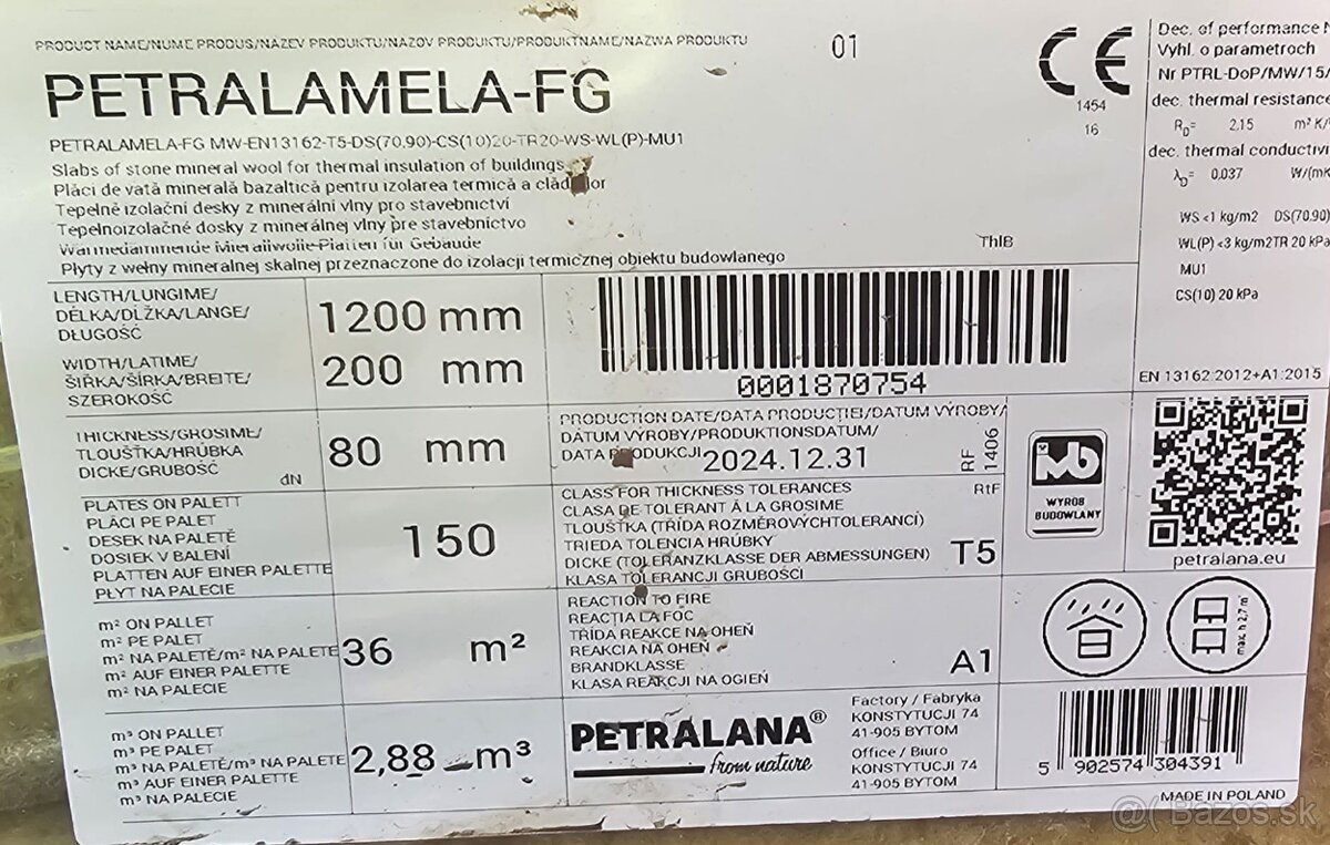 Predam minerálnu vlnu - Dosky z kamennej vlny so základným náterom 1200 x 200 x 80.