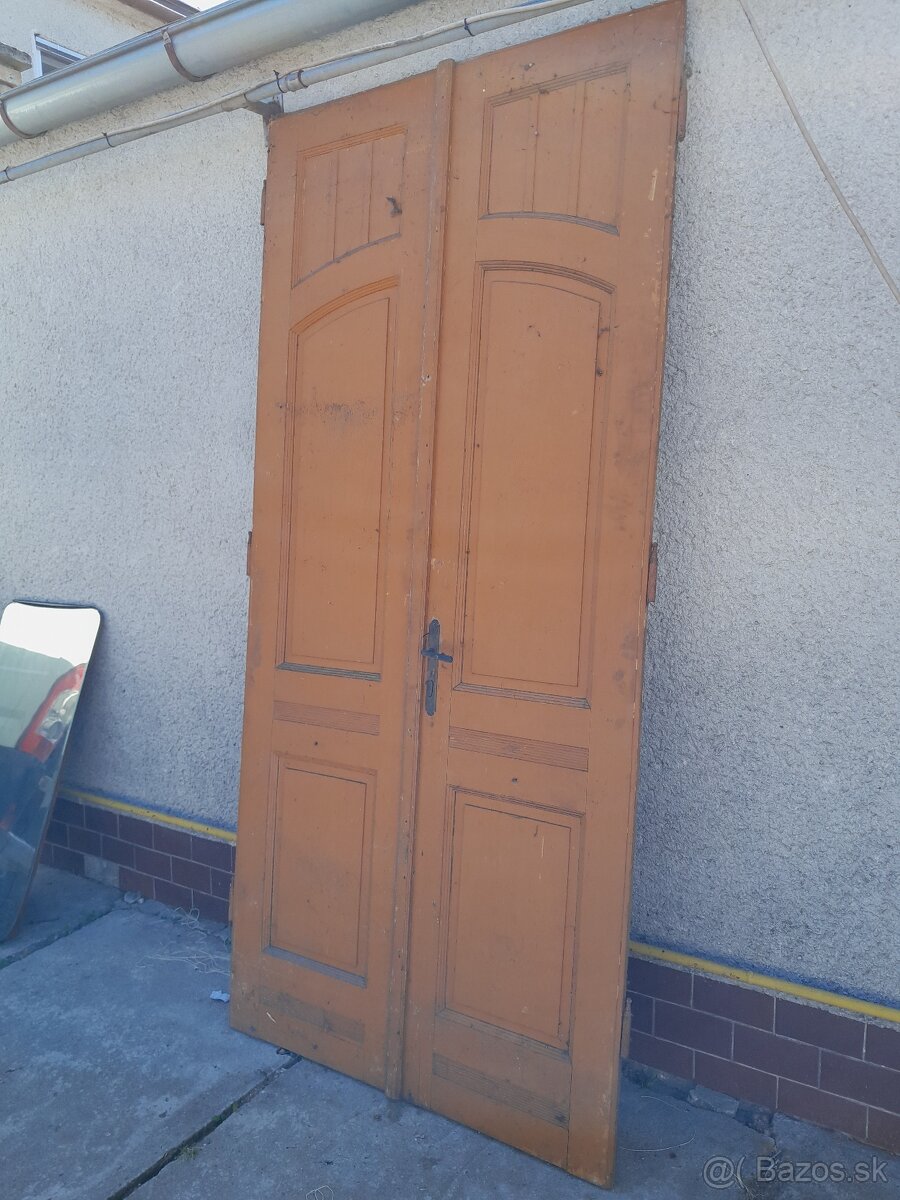 vintage retro drevené dvere z jednej strany sú biele a z druhej oranžové cena za pár 60€