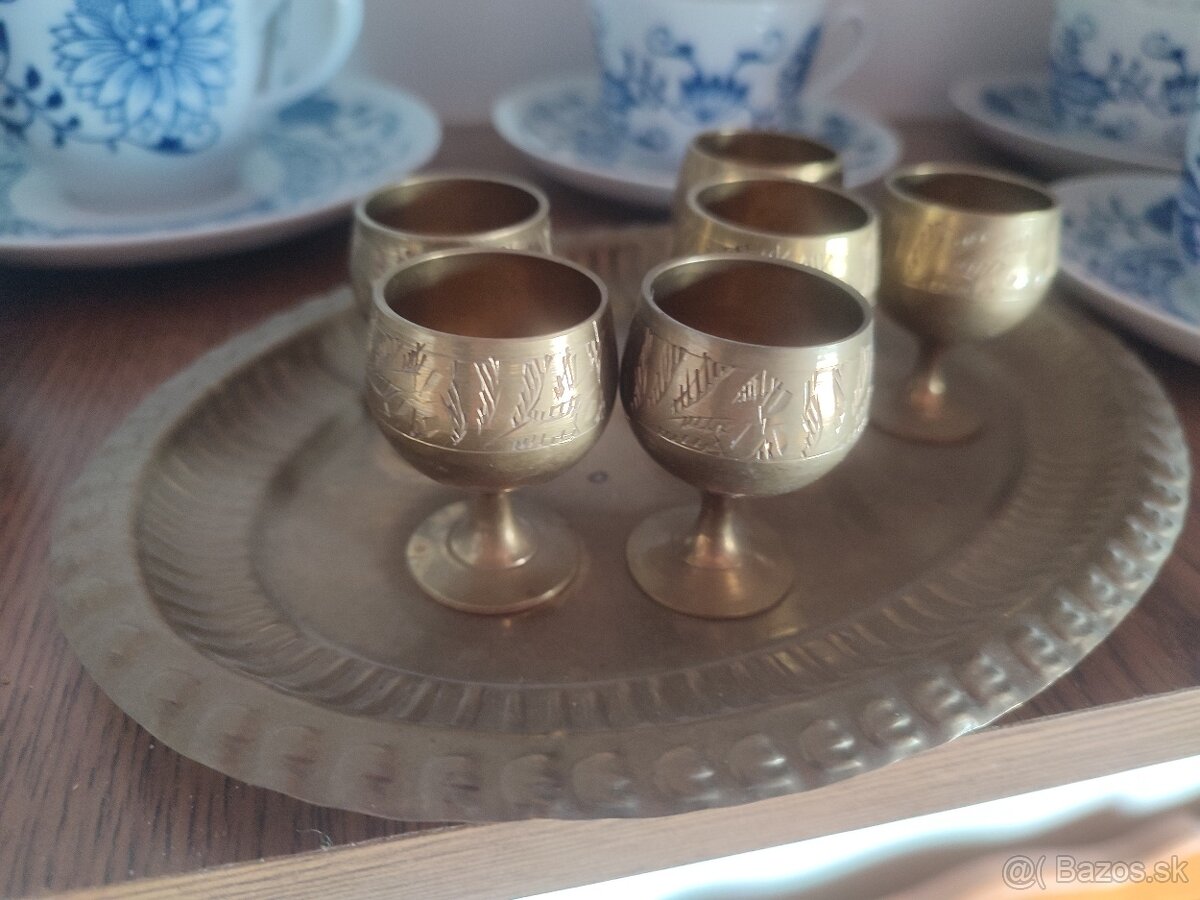 Staré mosadzné poháriky s podnosom