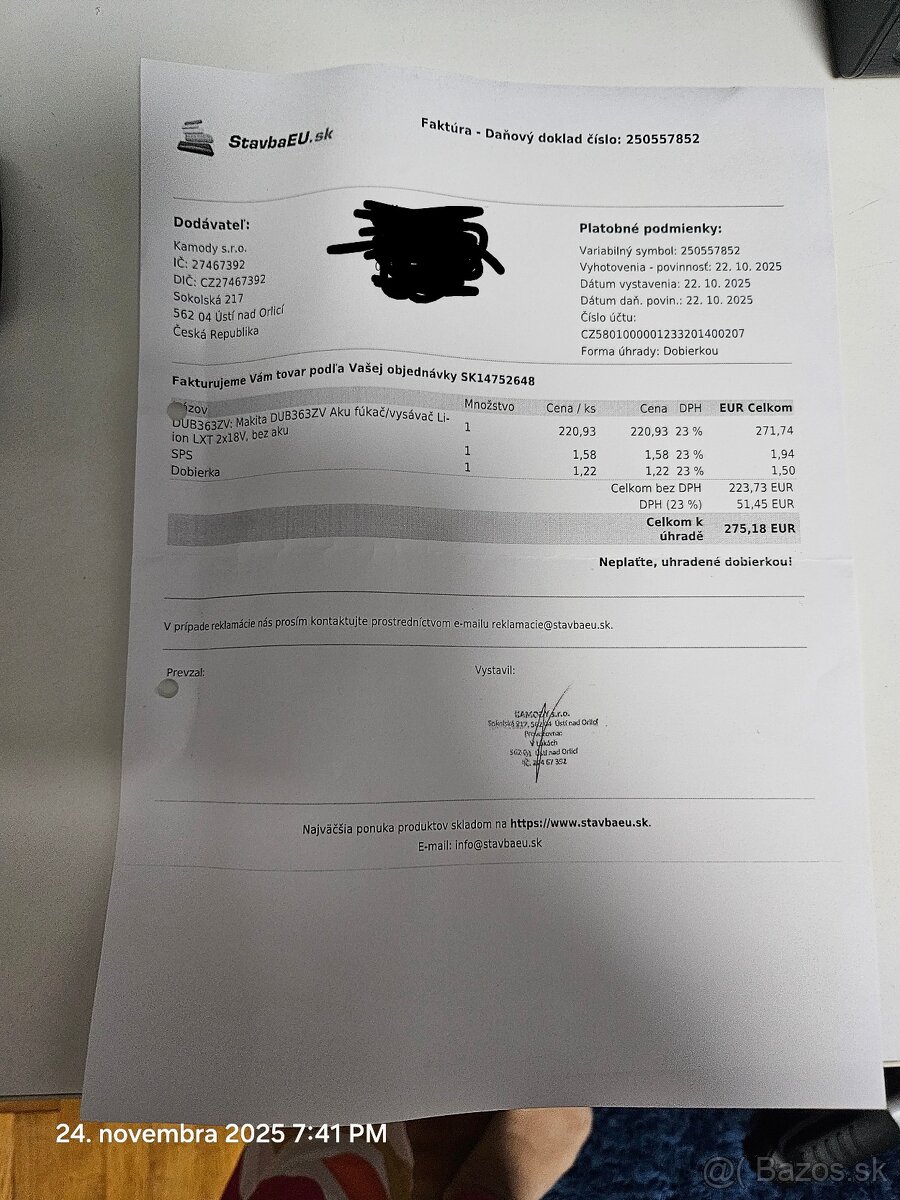 Predám nový vysávač/fúkač lístia značky Makita zakúpený 22.10.2025.Použitý 1x na vyskúšanie. Nevhodný vianočný darček.