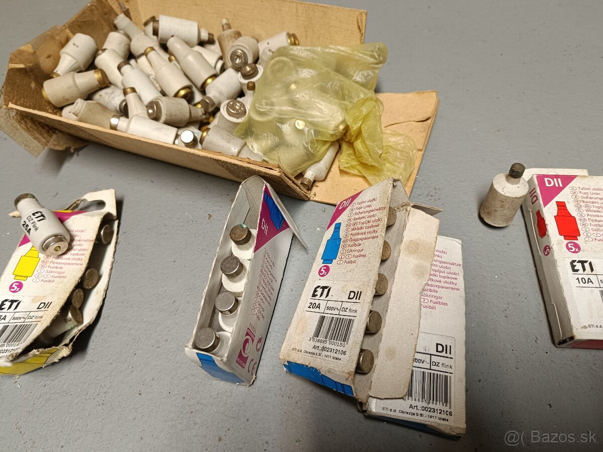 Predám domové poistky rôzne druhy, 10A 20A 25A odhadom cca 50ks sú tam aj úplne nové, nepoužité... sú tam aj nejaké objímky.Pošlem aj na dobierku - cena 10€+ poštovné