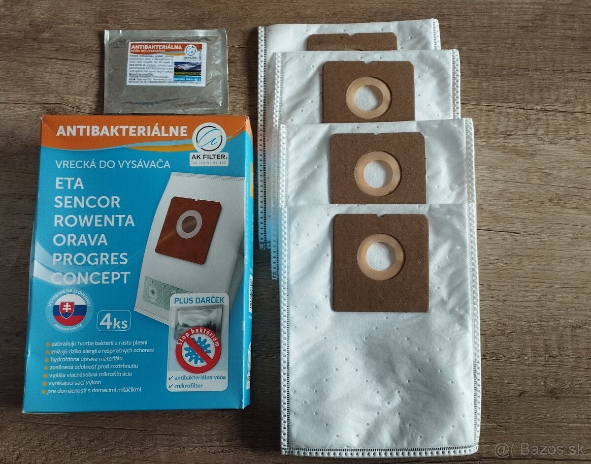 Balík obsahuje: 4 ks vrecká, 1x mikrofilter a 1x vôňa do vysávača. 1 balík za 7 eu