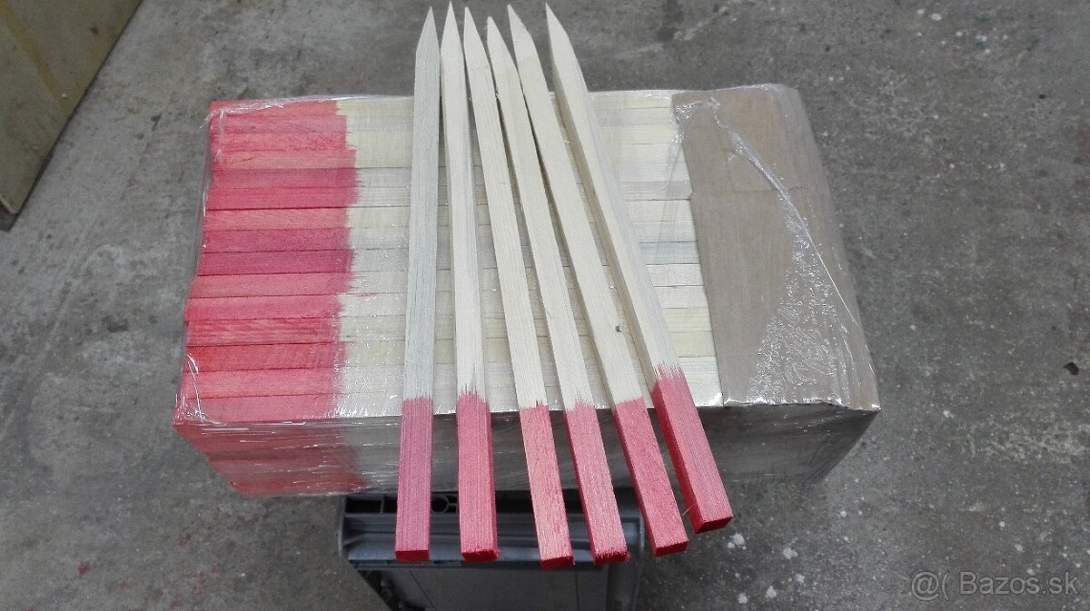 Predám vytyčovacie kolíky, zašpicatené zo štyroch strán, prierez kolíka 2x2,5x50cm a 2x3,5x100cm, koniec zafarbený na červeno, vhodné pre geodétov, na vytyčovanie, zameriavanie, geokolíky, organizátorov kolektívnych športov / hier, záhradkárov a podobne