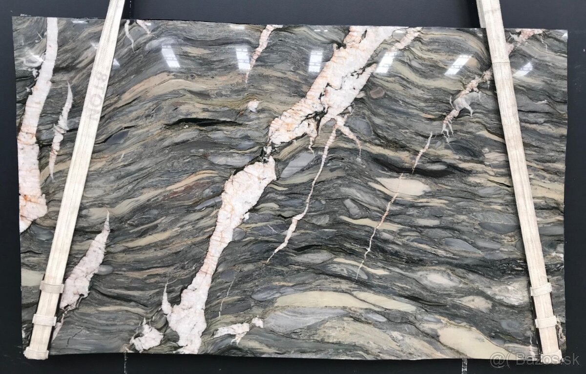 Exotická mramorová doska Crystal Fusion, prírodný materiál, leštená, hrúbka 2cm, podlepená zadná strana pevnostnou sieťkou, balzamované hrany.