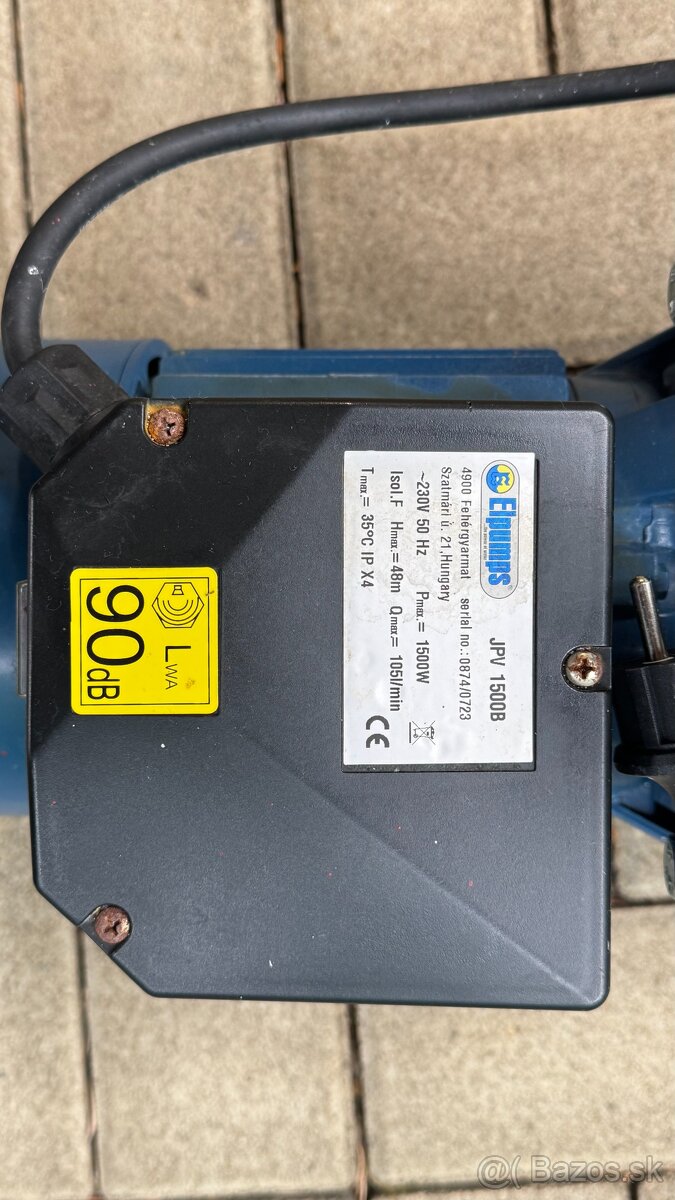 Predám záhradné čerpadlo Elpumps JPV 1500 B na čerpanie vody zo studní a vrtov. Príkon 1 500 W, 6 300 litrov za hodinu, dopravná výška 48 m. Antikorózny materiál.