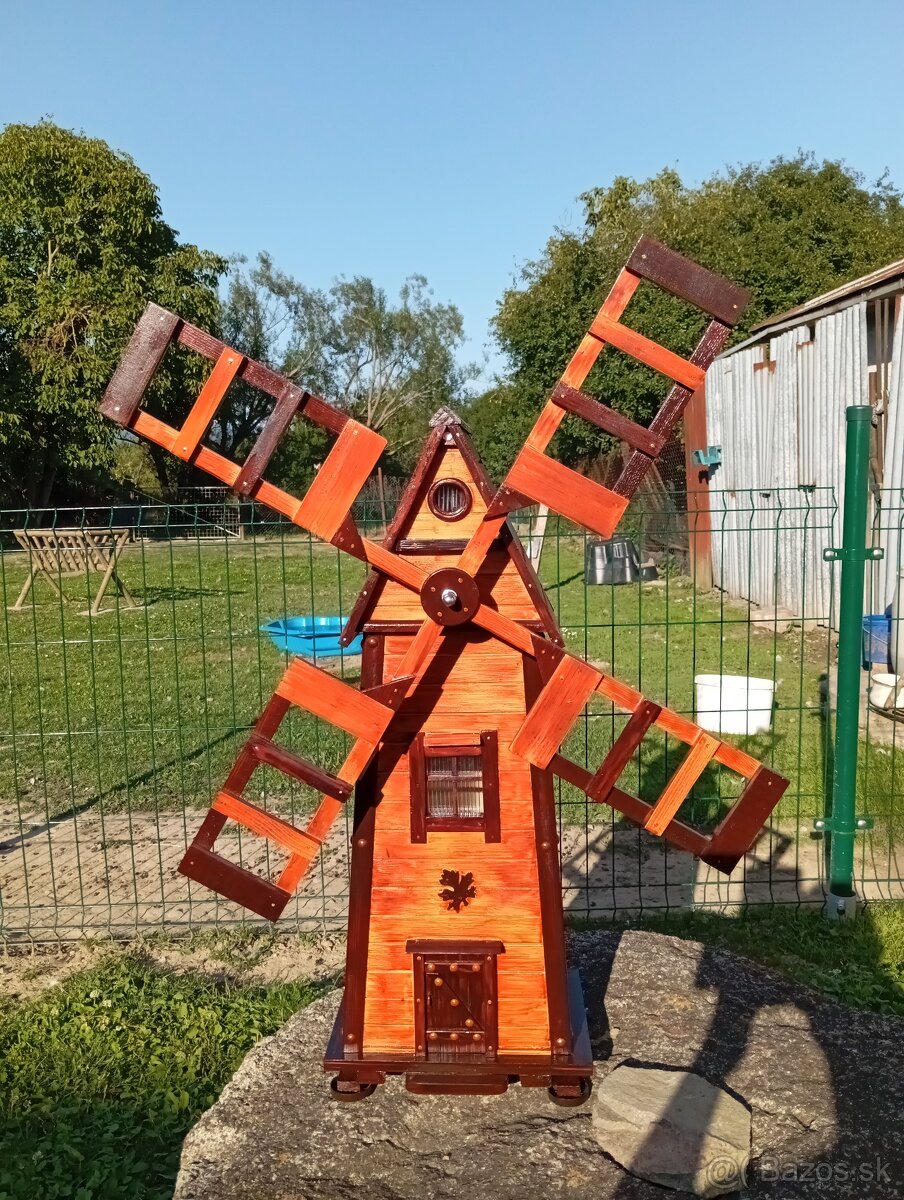 Záhradná dekorácia - [22.12. 2025]Záhradná dekorácia veterný mlyn osvetlenie sumrakovy senzor teplomer a vlhkomer,rozmer v 145cm š 85 cm h 45 cm