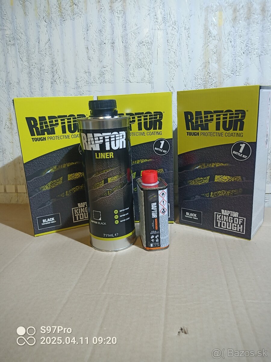 Ponúkam na predaj odolný ochranný nástrek U POL RAPTOR čierny. Vhodný na rôzne povrchy (kov , plast , drevo , kompozit...). Využitie :korby ,podvozky ,lemy a pod... Po vytvrdnutí odolný voči mechanickému poškodeniu ( škrabance) a chemikáliám (benzín, slaná voda atď). Antikorózny účinok. Cena za jeden set (Raptor + tužidlo) 28eur. .