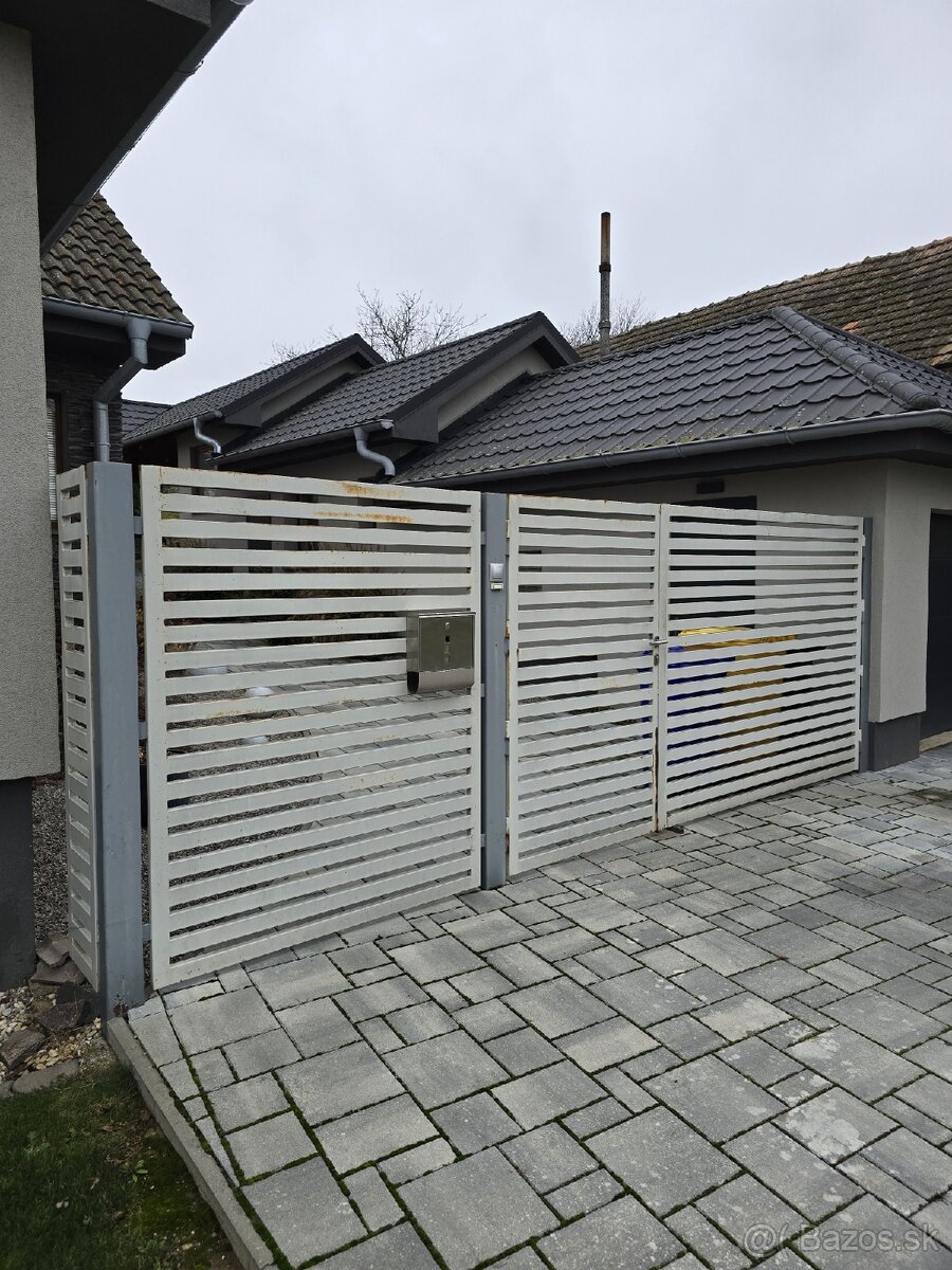 Predám bránu, bránku, menšiu bránku bez kľučky a dva pevné dielce vyrobené z masívneho obdĺžnikového železného jokla (hrúbka steny 2 mm).