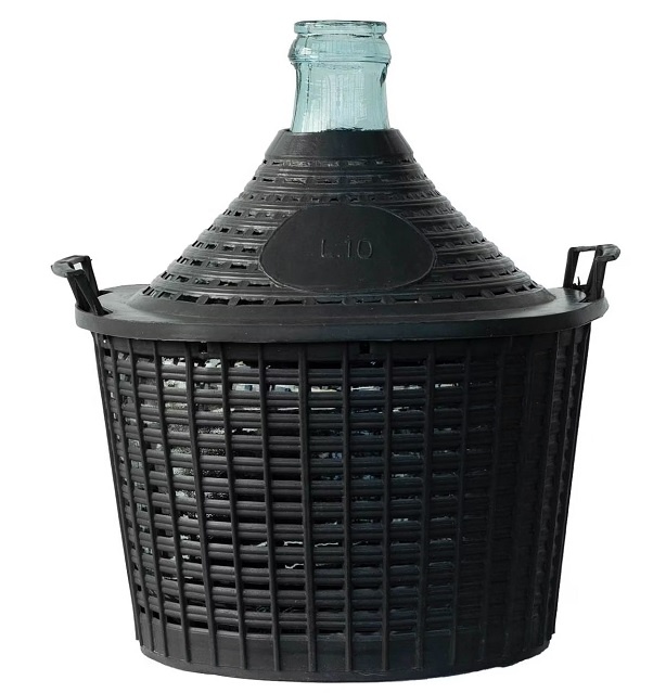 Predám demižón v plastovom koši + korkový aj plastový štupel. Požívané na pálené a brandy.