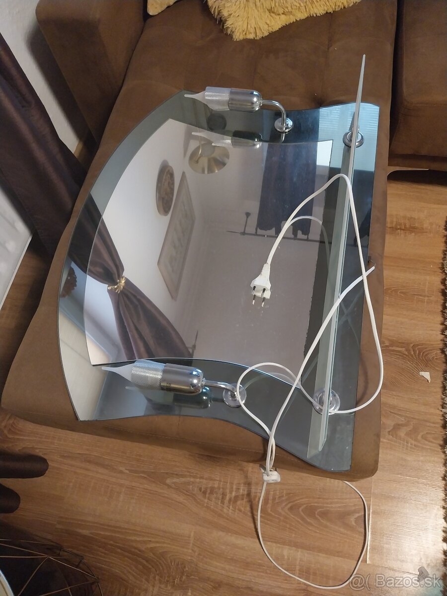 Predám zachovalý komplet do kupelne / zrkadlo ppdsvietene s polička,polička zrkadlo,drziak fenu.