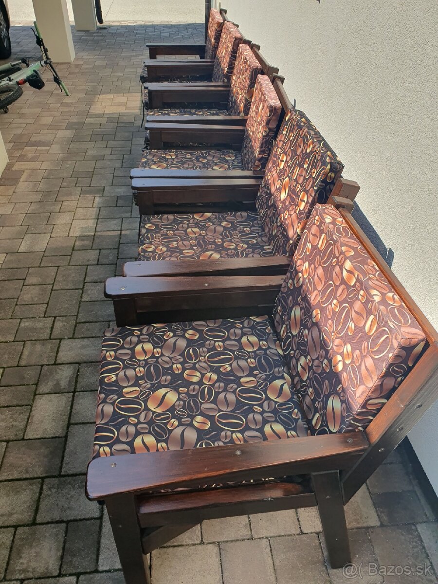 Predáme drevené, záhradné stoličky v počte 6ks. Používané.Všetky spolu s poťahmi za 200€.
