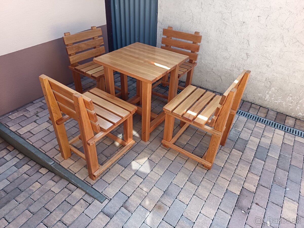 Sedenie z tvrdého dreva s výraznou a rôznorodou kresbou dreva, vhodné do interiéru aj exteriéru.