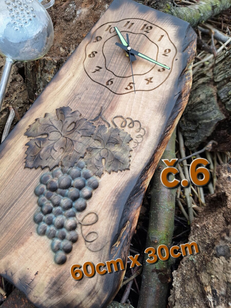 Nástenné hodiny pre vinohradníka z masívneho dreva. Možnosť vygravírovať číslicu k jubileu grátis. Hodiny perfektne zapadnú do viničného domčeka.