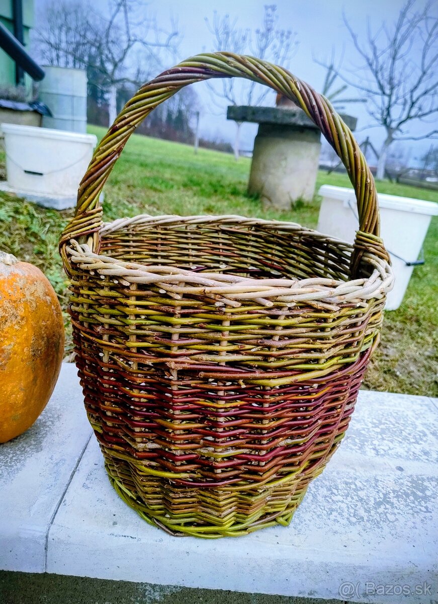 Predám rôzne tohtoročné košíky: veľké koše s uchom, 2 ks: 20 eur/kus (druhá fotka), koše na huby 15 eur/ kus, miska 10 eur/kus, kôš na drevo 30 eur.
