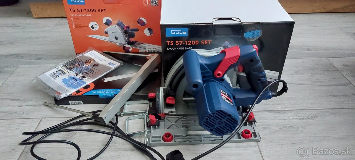 predám zánovnú ponornú pílu Güde, 1200W, priemer kotúča 165mm, hĺbka rezu 60mm, 2x vodiaca lišta 70cm (140cm), + bočná vodiaca lista, blocek o kúpe, záruka este 14 mesiacov, cena 100,- eur! Len osobný odber v Lipt.Mikulási