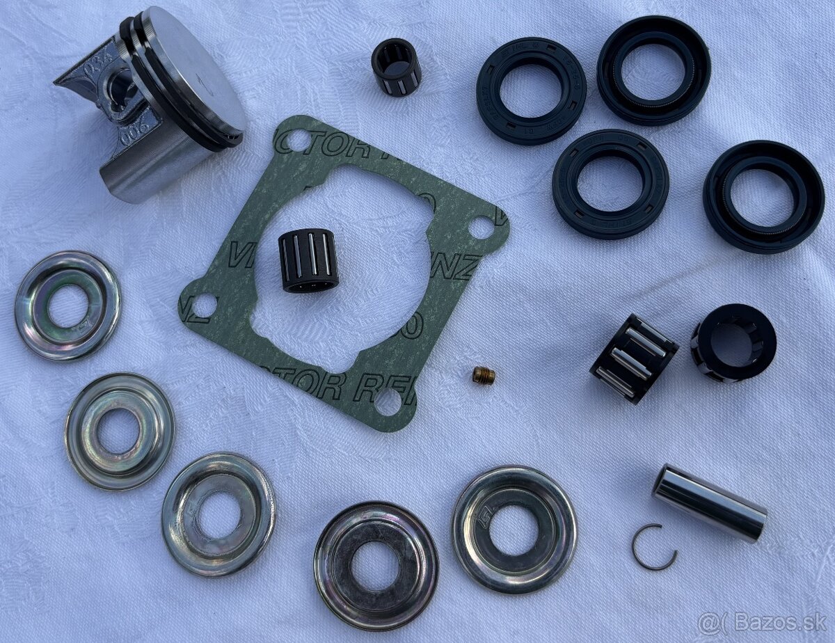 Nabízím nepoužité, nové, motorové díly (18ks) k řetězové pile STIHL. č.1) Píst 34mm jeden kus, č.2) věnec jehlového ložiska 10x13x12,5 jeden kus, č.3) věnec jehlového ložiska 8x11x10 jeden kus, č.4) podložka 27mm pět kusů, č.5) trubička k pístu s pérkem 22x8mm jeden kus, č.6) těsnící kroužek hřídele 15x25x5 čtyři kusy, č.7) těsnění válce jeden kus, č.8) pevná tryska 0,40 jeden kus, č.9) věnec jehlového ložiska 10x16x12 dva kusy. Více fotek pošlu mejlem. Prodám jen jako komplet za cenu 20.0€. Ceny dopravy/doručení: DHL na adresu platbou na dobírku/11.5€ nebo platbou převodem, popř.PayPal/8.0€. Zásilkovna/Packeta do Z-Boxu platbou převodem, popř.PayPal/4.5€.