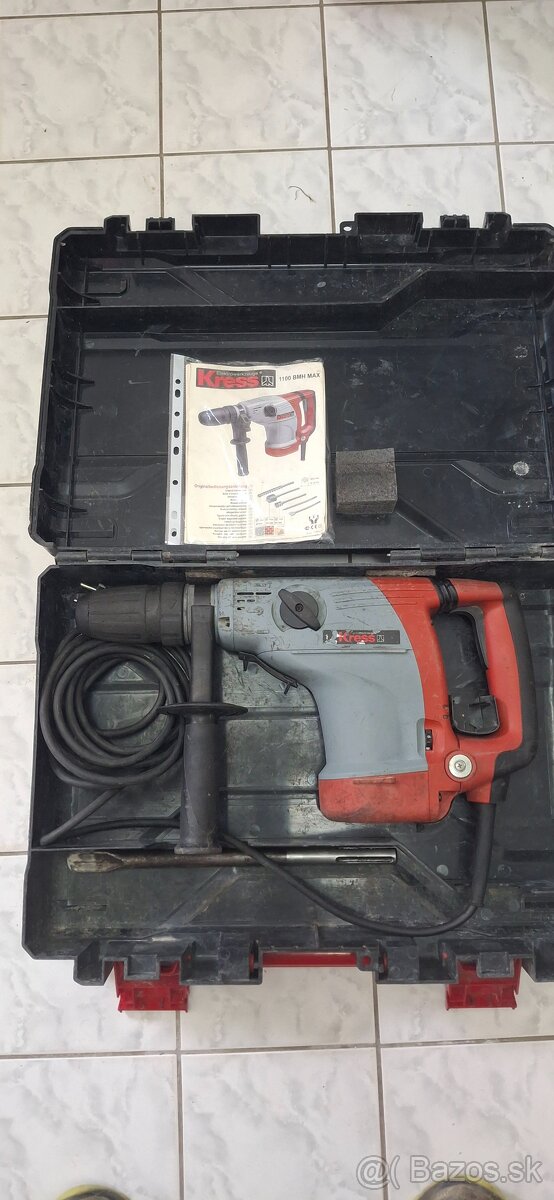 Predám používané vŕtacie a zbyjacie kladivo KRESS, sila úderu 10J,plne funkčné, kufor, sekač
