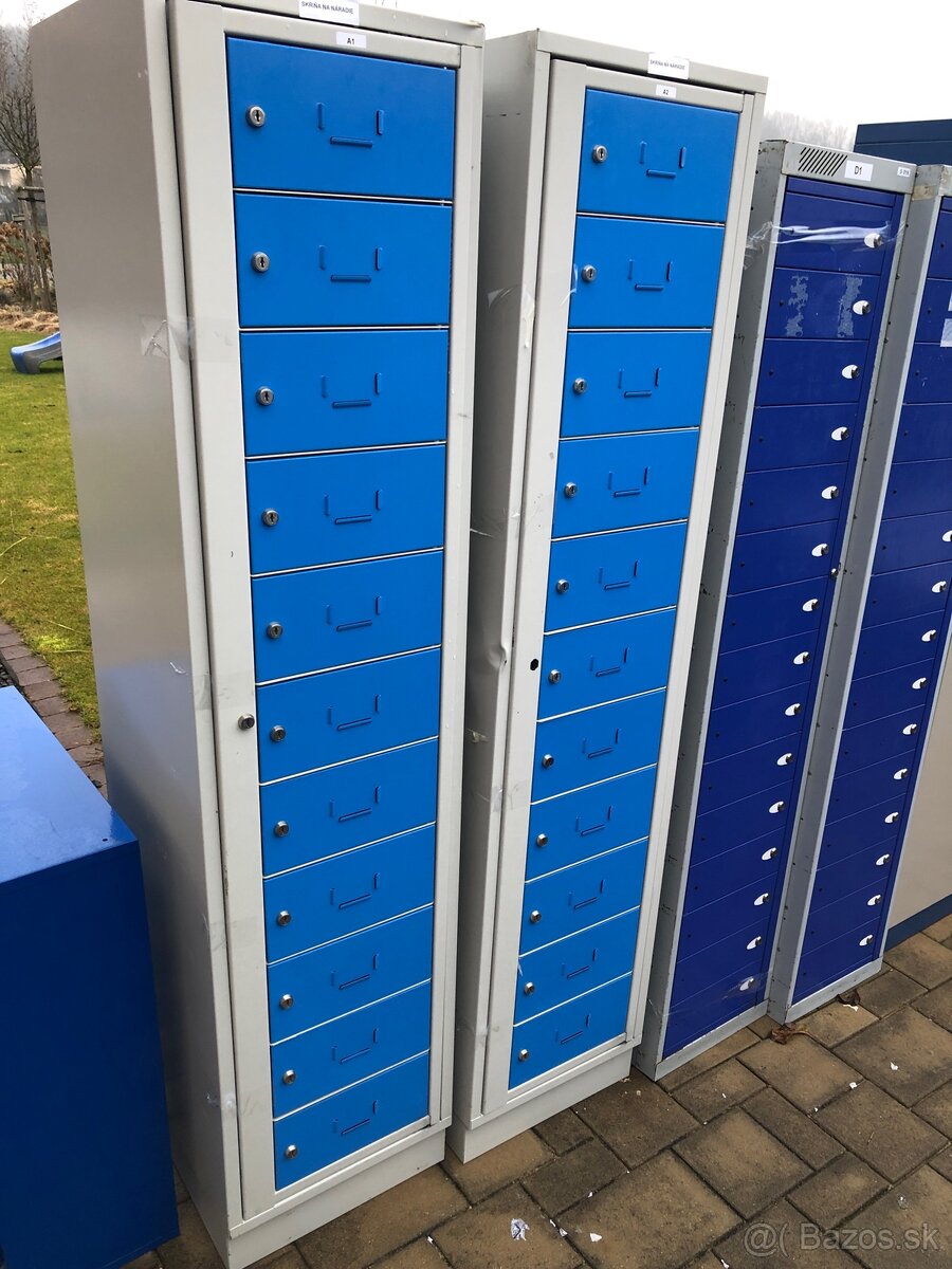 Šatníková kovová plechová skrinka 1ks - [19.12. 2025]Jedná sa o skrinku v strede s modrými dvierkami. Mám posledný kus.