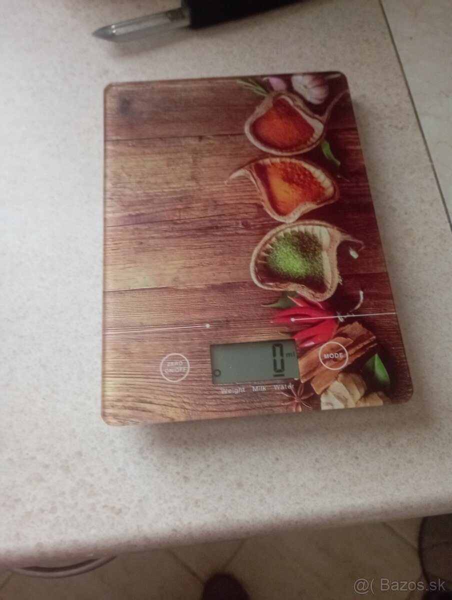 Predám sklenený obrázok 2€, prívesok 1€,váha 2,zepter nože 3€,mušle na servirovanie jedla 3€, škriatok dekorácia 2€