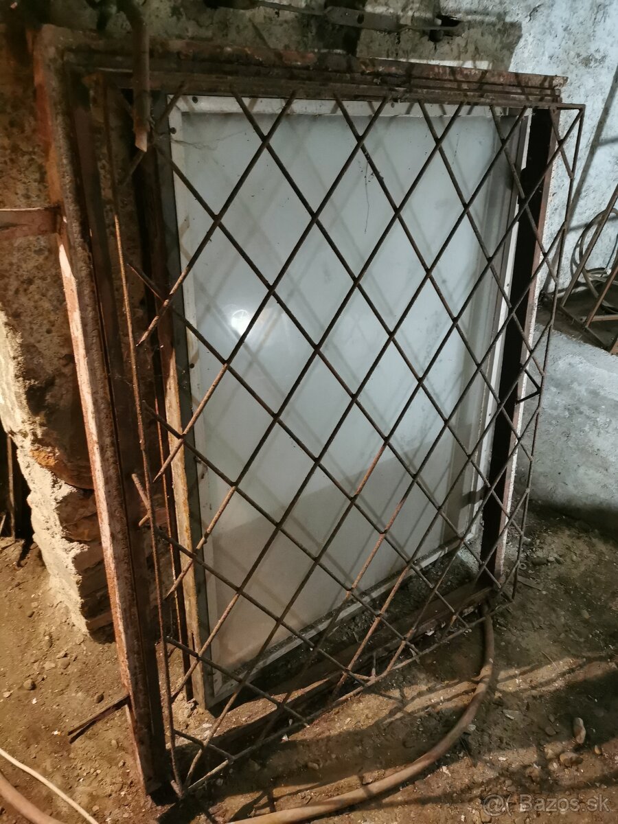 Predám železné okno s mrežou, dvojsklo (1 sklo neprehladné) 146x118