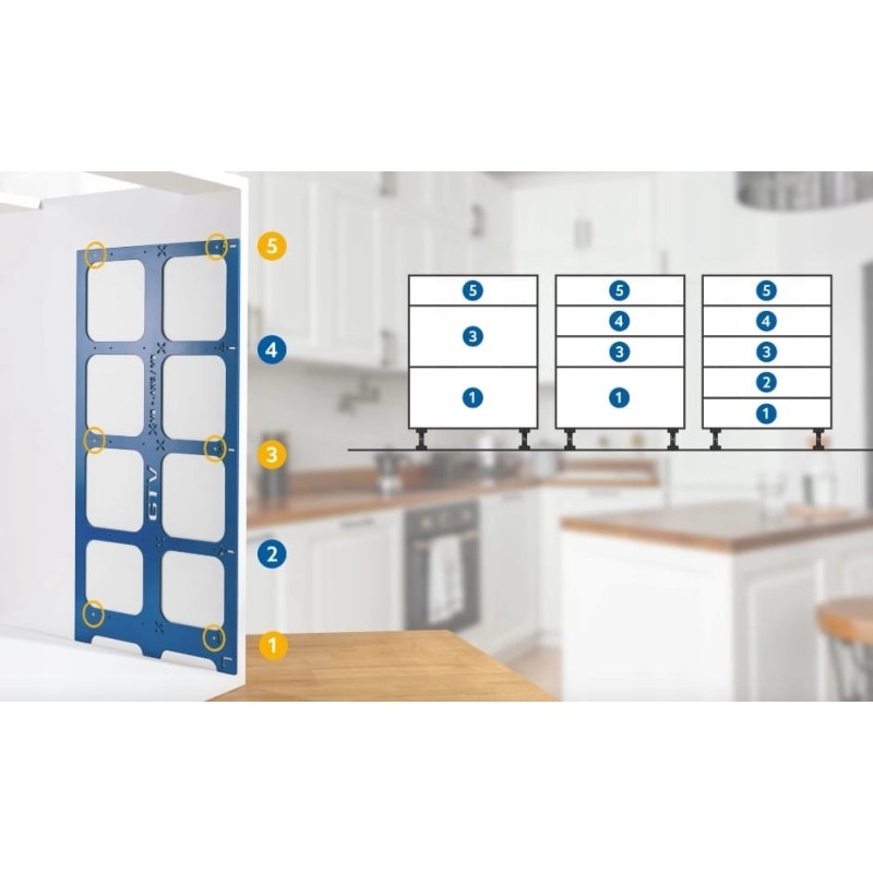 Štandardný proces inštalácie zásuviek do korpusu je časovo náročná úloha. Vďaka GTV šablóne to však bude oveľa jednoduchšie. Šablóna je určená pre najpopulárnejšie zásuvkové systémy AXIS PRO, MODERN BOX PRO, MODERN BOX ale aj pre iné menej štandardné systémy.