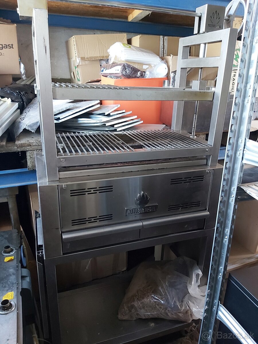 Profesionalny gril, udrzuje teplo dlhsie ako bezny plechovy gril. Aj s podstavcom a bocnymi polickami. Vyskovo nastavitelna plocha na grilovanie. 2 poschodia. Sirka 80cm. Da sa pouzit v restauracii, na vonkajsie aj vnutorne grilovanie.