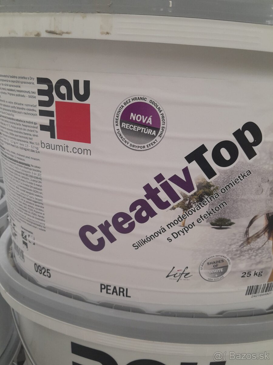 Baumit CreativTop Pearl 0,5 mm silikónová omietka 25kg - [20.12. 2025]Predám dve vedrá tejto fasádnej omietky. Dôvod predaja ostali mi na vyše.40€ za jedno vedro, spolu za obe vedrá 70€