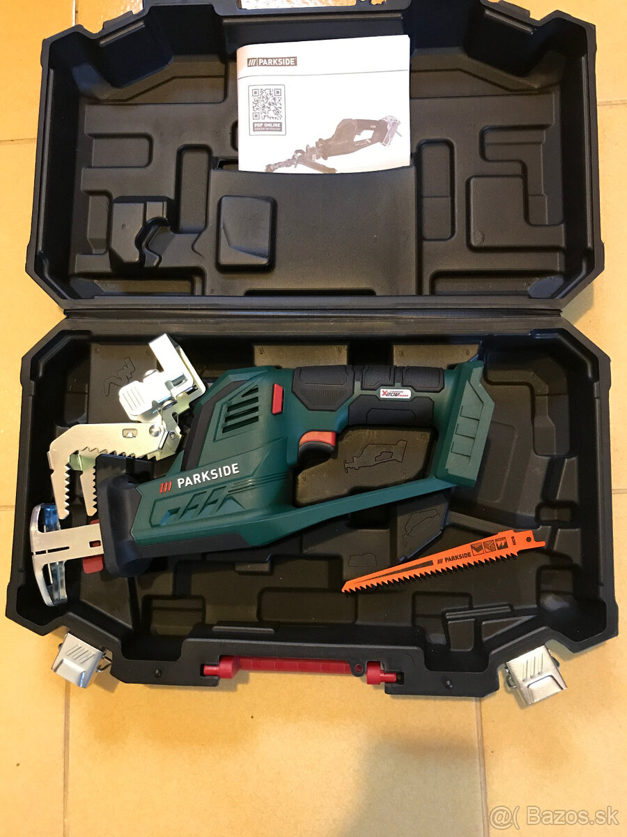 Predám novú nepoužitú chvostovú pílu PARKSIDE PASA Li A1. Napätie 20V, počet zdvihou 2700 min-1, zdvih 20mm, hĺbka rezu 90mm. Úložný kufrík, návod na obsluhu, uchytávacia spona na konár, pílový list.