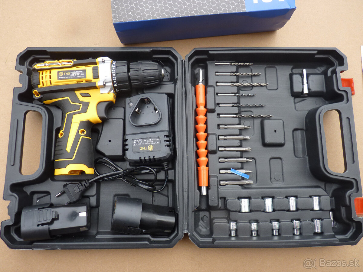 baterkovu aku vrtačku šrobovačku z dvoma baterkami nabijačkou a prislušenstvom.
