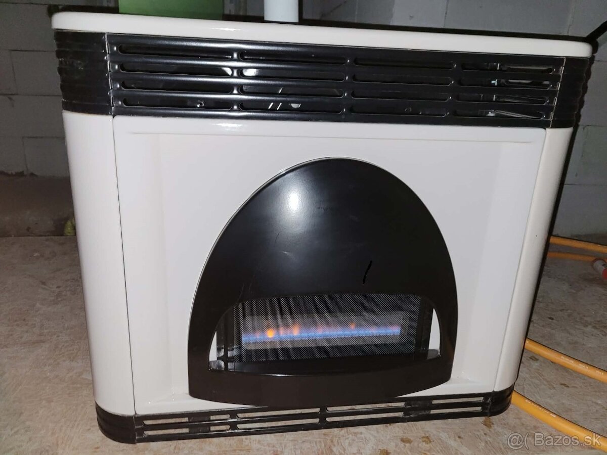 Predám tieto plynove kachle Lampart z vyvodom do komina + 2metre rura/komin (vykon 6,8kW, keramicky horák, V/Š/H - 62cm/75cm/33cm)