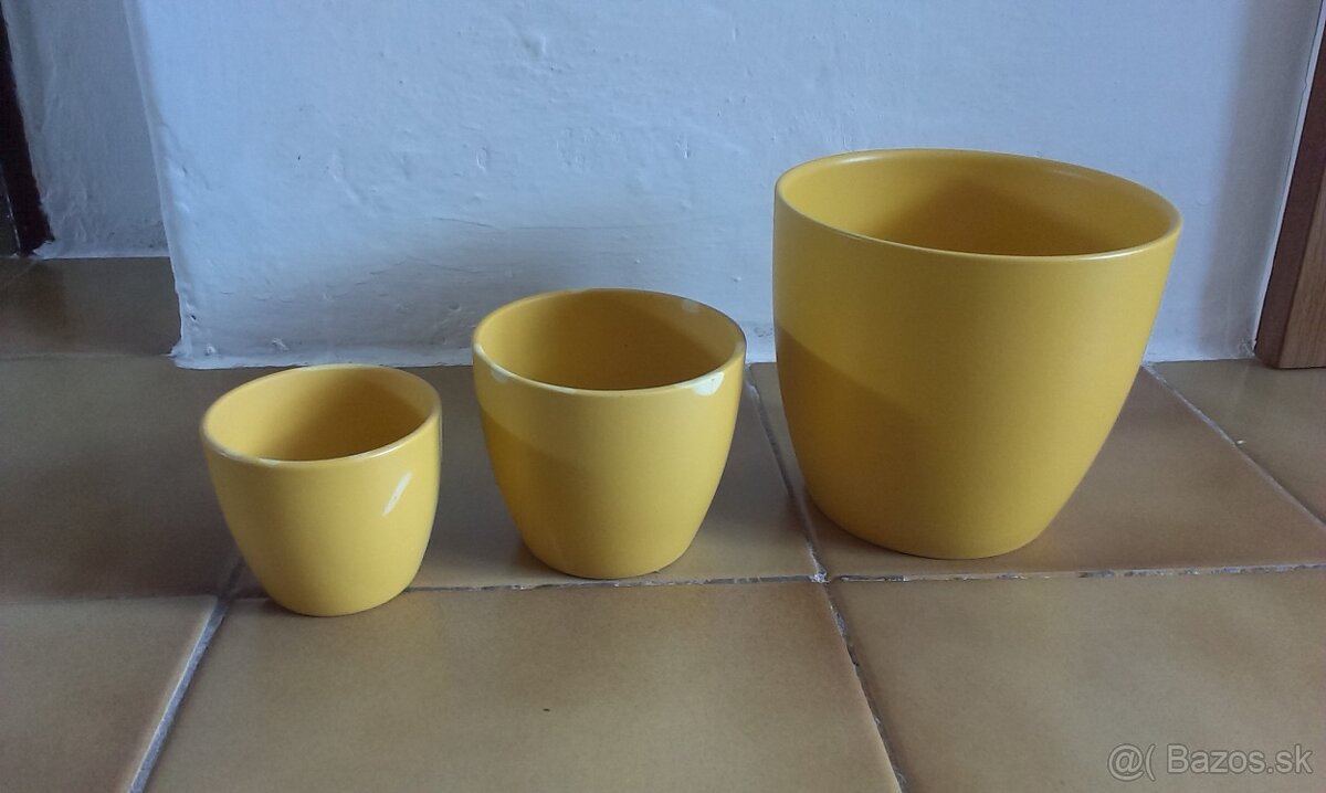 Predám črepníky z terakoty, plastové a keramické: Rozmery črepníkov: fialový - 18 (výška) x 19 cm (priemer) - cena 8 eur, žltý - 10 (výška s podnosom) x 11 cm (priemer) - cena 5 eur, terakota mištička - 5 (výška) x 12 cm (priemer) - cena 2,5 eur, žlté kvetináče: najmenší - 7,5 (výška) x 7 cm (priemer), stredný - 9 (výška) x 9 cm (priemer), najväčší - 13 (výška) x 14 cm (priemer) - cena za všetky 12 eur, biele okrúhle plast - 22,5x15 cm, črepníky na orchideu, oválne črepníky, črepníky s mištičkami... Črepníky sú zánovné, niektoré vôbec nepoužívané, nepoškodené. Viac info v maily.