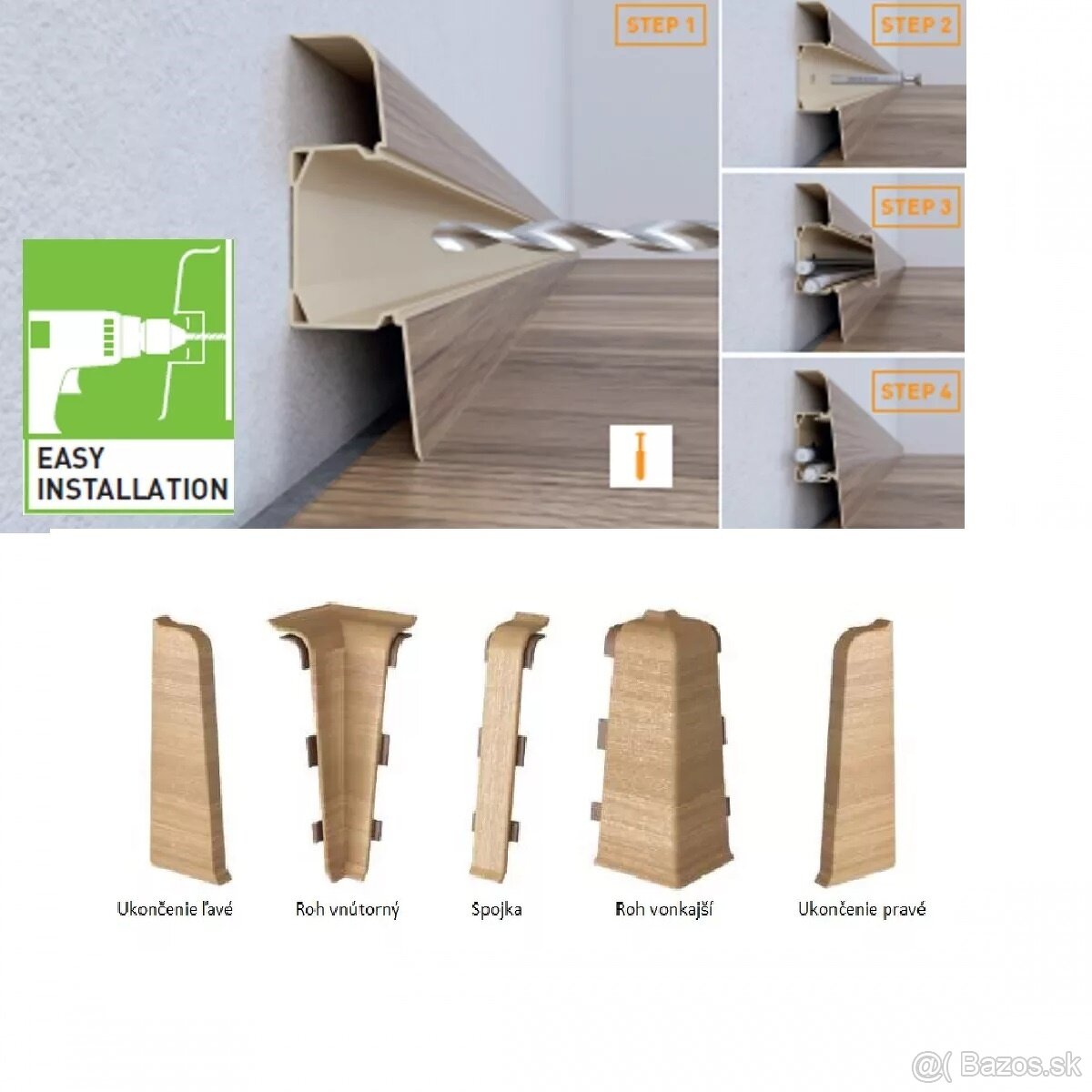 Predám nové nepoužité 7cm vysoké PVC LIŠTY ARBITON LARS ORECH BRAZILSKY 12 + prof