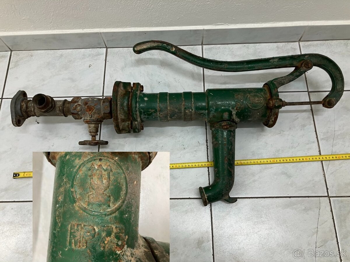 Ručné čerpadlo na vodu, mechanika a teleso je v poriadku, nie je zlomená alebo prasknutá, treba vymeniť tesnenia. Cena: 30.- EUR.