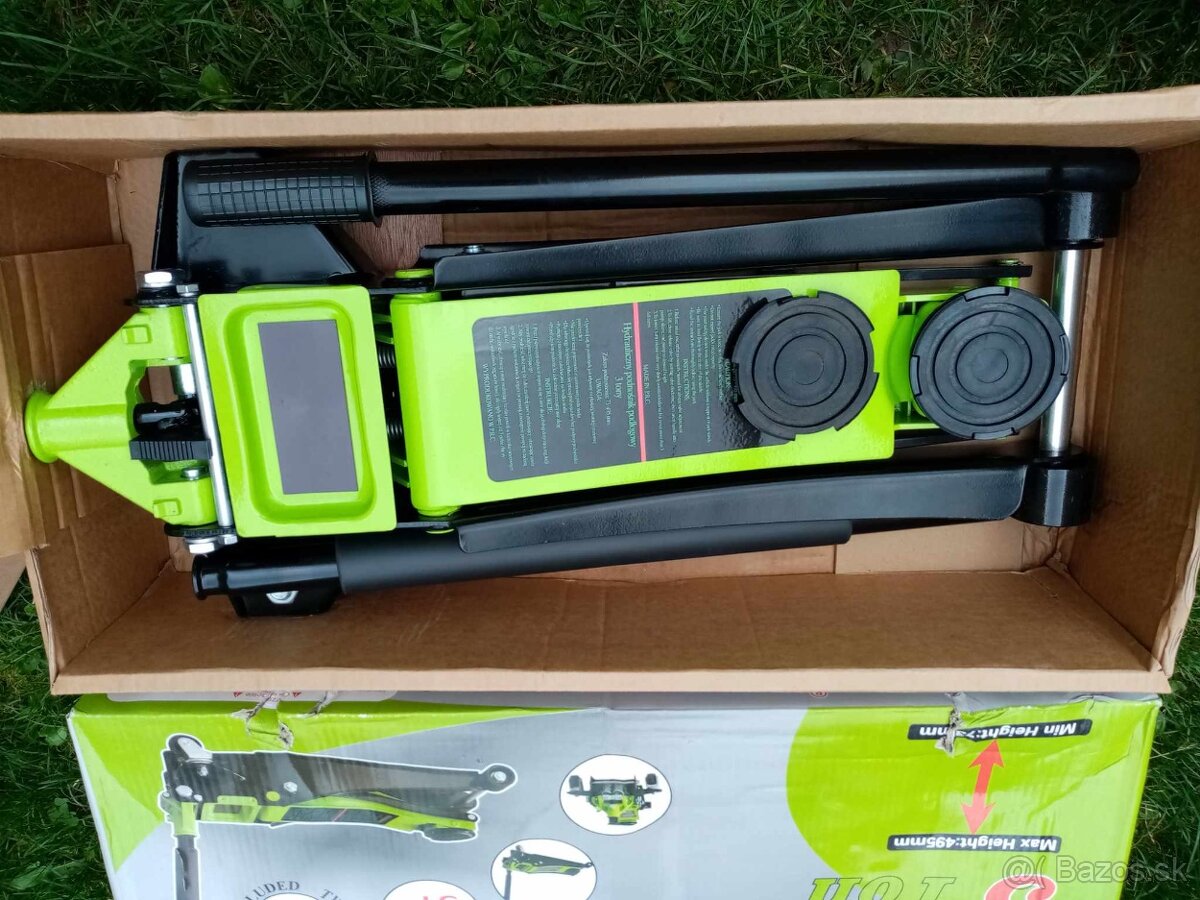Hydraulicky dvojpiestovy pojazdný auto zdvihák na koliečkach, kvalitny masívny dve otočne a dve pevne zdvih 73 po 495mm,