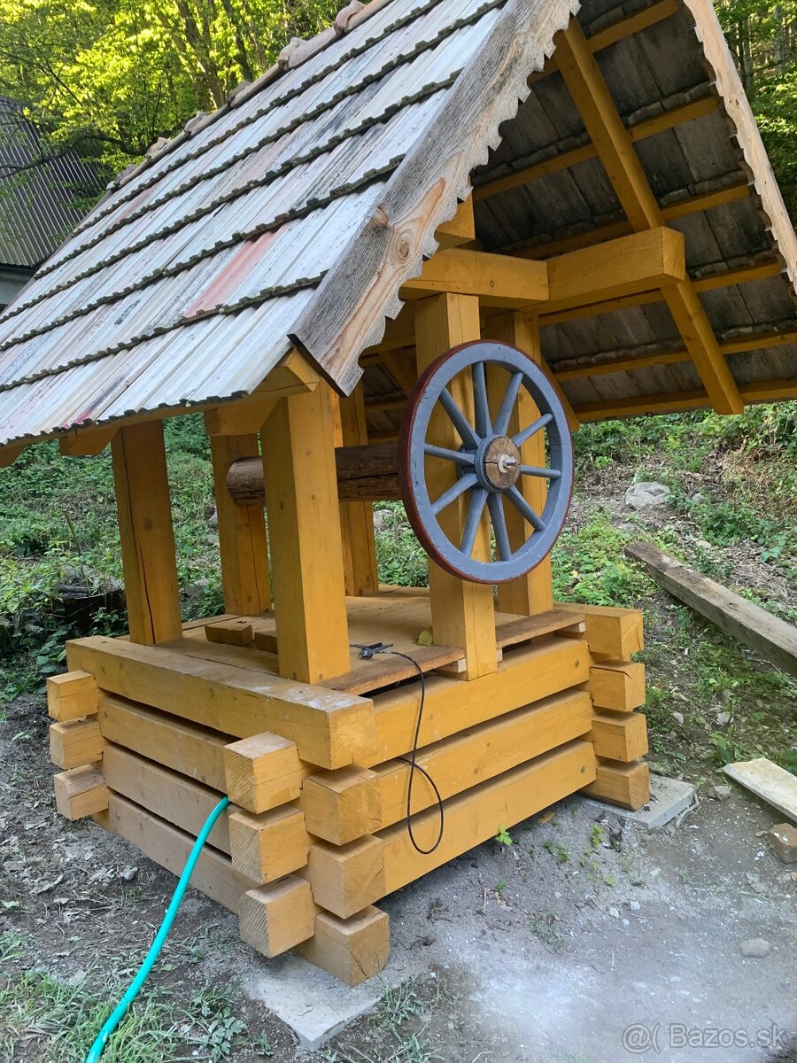 Predam prístrešok na studňu dobového štýlu, vyrobený pred 2 rokmi, poriadne tesárske spoje, pevný kvalitný, na zamykanie ideálny na záhradu alebo k rekreačnej chate, štýlový kúsok aj k domu. Pre viac info volať. Hranoly 15x15. Rozmery na požiadanie. Cena 2200 eur