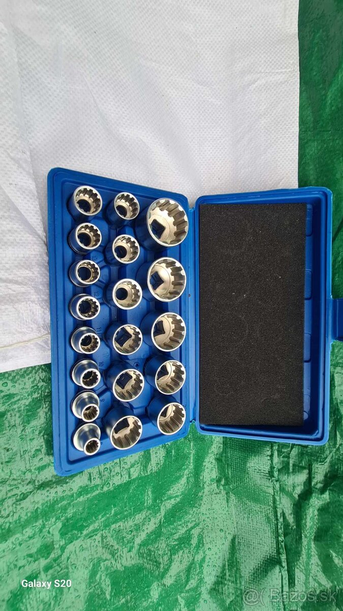 golasada dvanásťhranných kľúčov o veľkosti 8 až 32mm, nástrčné hlavice Spline v plastovom kufriku