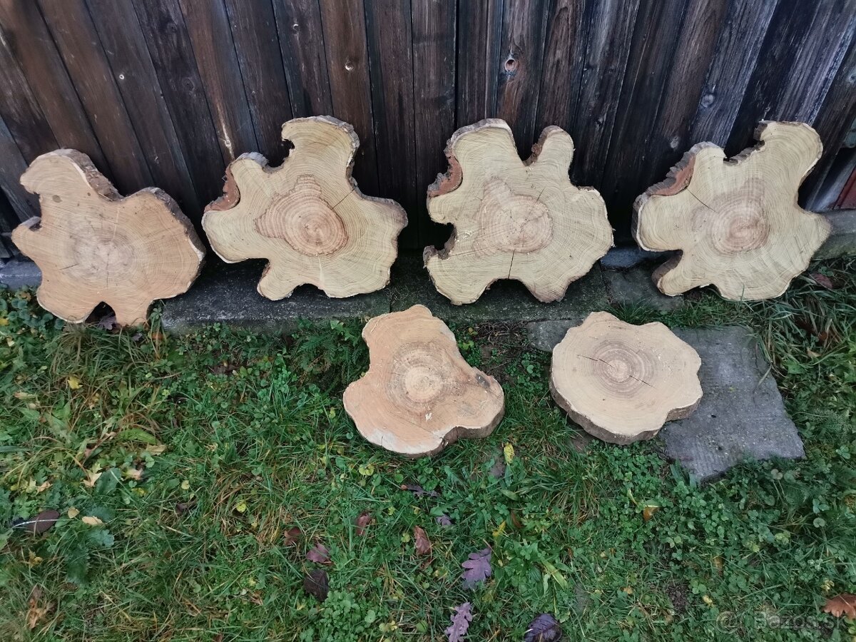 Predám dekoračné kmeňové drevené pláty z agátu, rôzne tvary. Majú naozaj netypický zaujímavý tvar. Hrúbka cca 5cm- 7cm. Šírka tých netypických na 2. a 3. fotke je cca 50cm- 55cm, šírka tých na 4. fotke cca 40cm. Cena za netypické na 2. a 3. fotke je 25€/ks, na 4. fotke vľavo 15€, vpravo 10€.