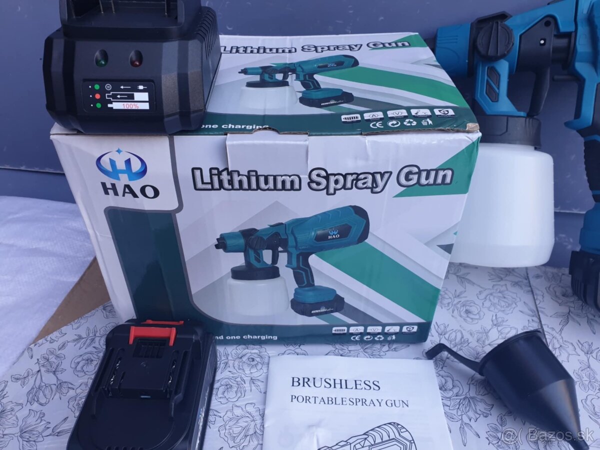 predam akumulátorovú baterkovu vzduchovú striekaciu pištoľ, plynulo nastaviteľnú reguláciu prietoku farby, možnosť nastavenia striekania na horizontálne, vertikálne, kruhové.