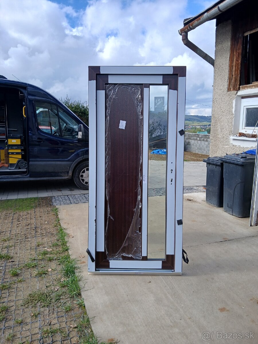 Predám nové plastové dvere z profilu aluplast ID 4000. Dnu biele zvon mahagón.