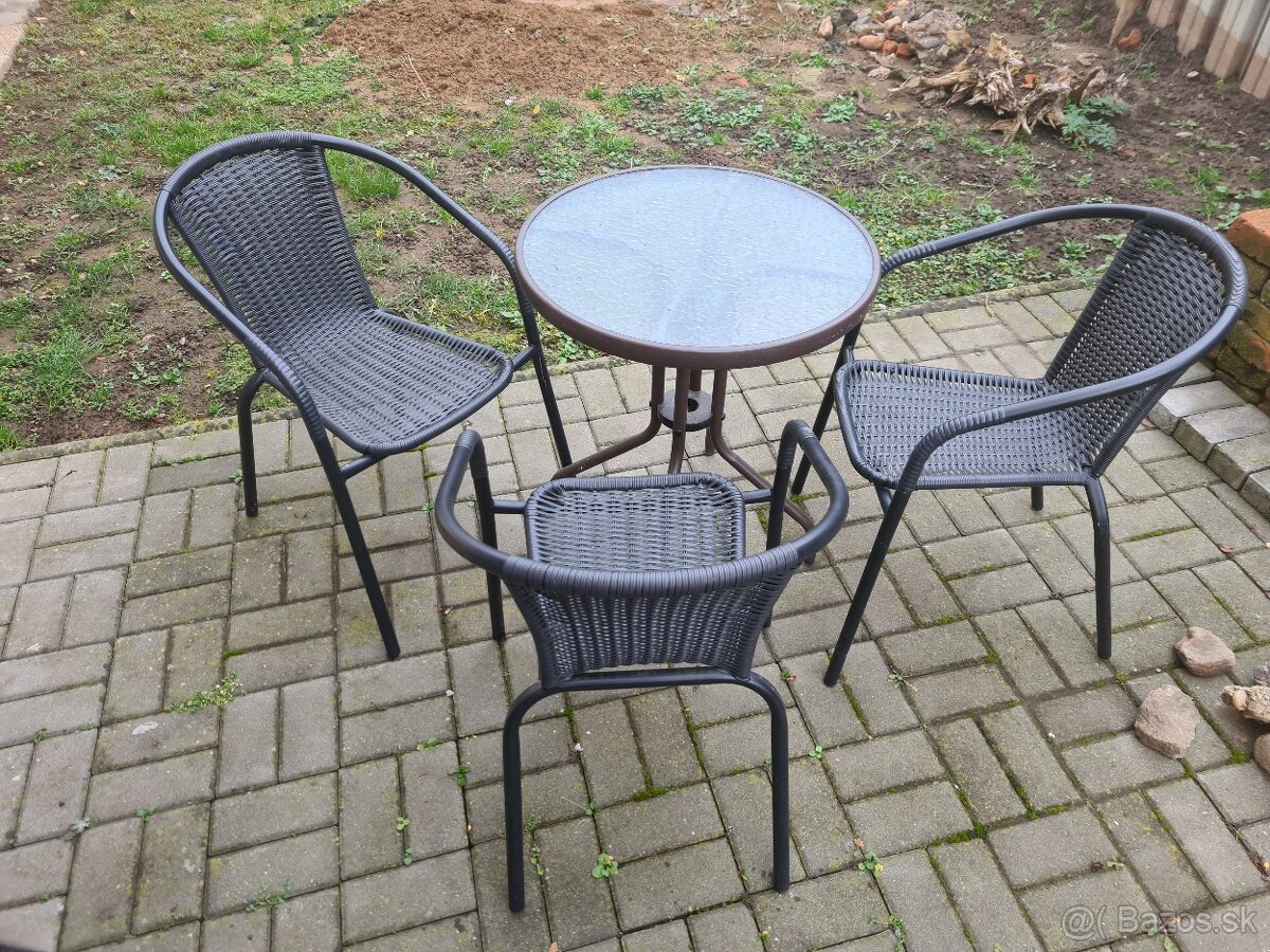 Predan skleneny stol s tromi stolickami. Kovove, ratan neposkodeny.