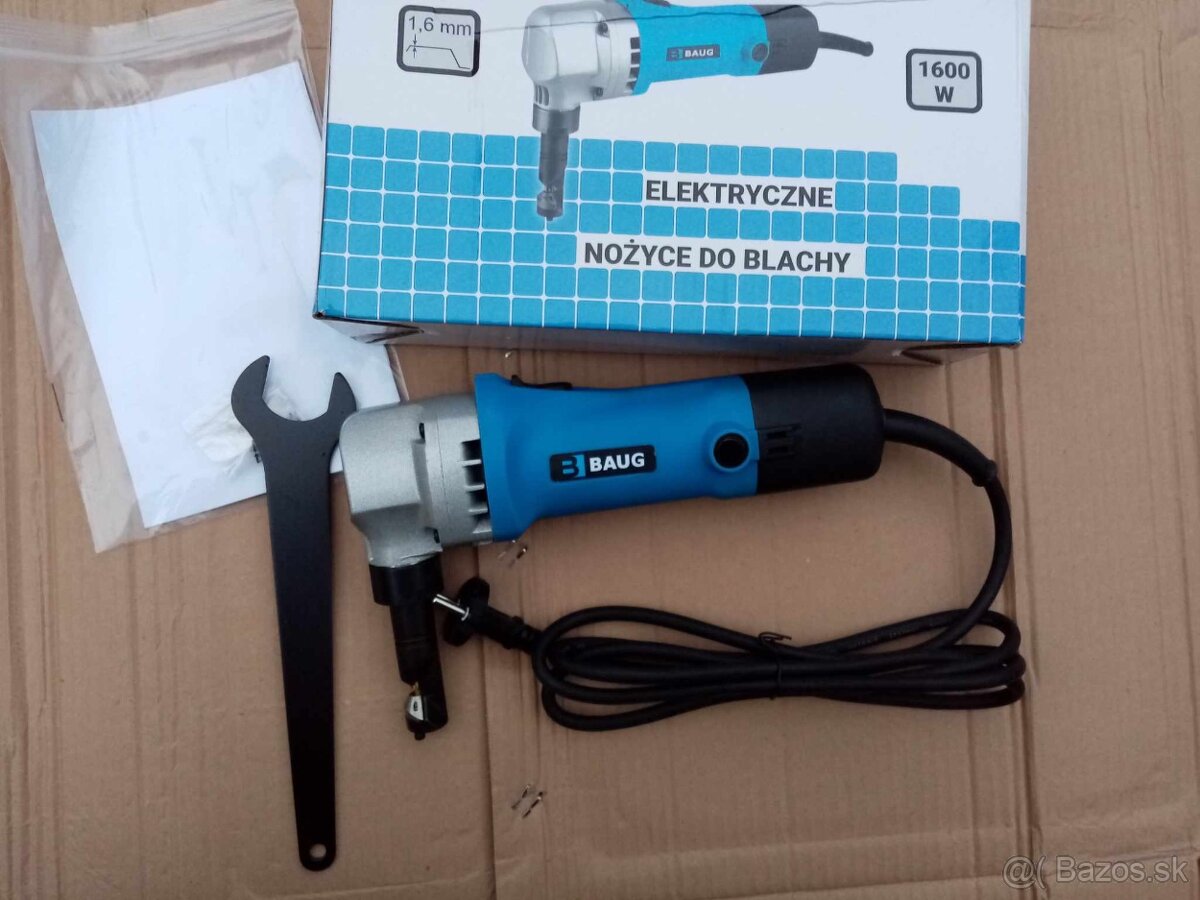 predam elektricke nožnice umožňujú presné rezanie rôznych druhov plechov, ideálne na rezanie rovných, lichobežníkových, vlnitých plechov, strešných tašiek rezanie v priamej línii, na oblúku a pri rezaní podľa určenej šablóny, rezanie plechov s hrúbkou 2,3 mm, Nožnice majú 360 ° otočnú matricu so zaistením v 4 polohách pri 90stupnoch