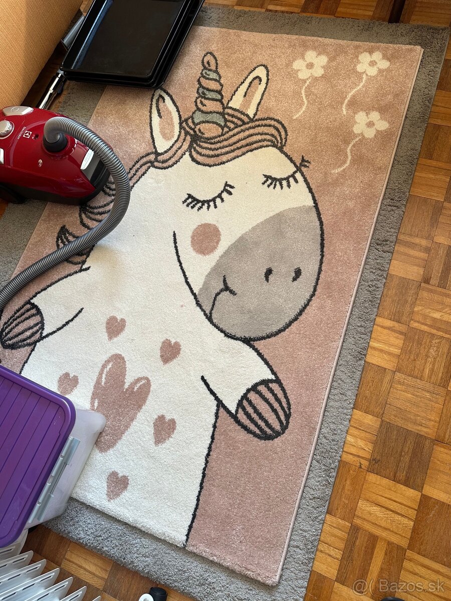 Predám nový, nepoužívaný koberec s motívom jednorožca, rozmery 100 × 150 cm.