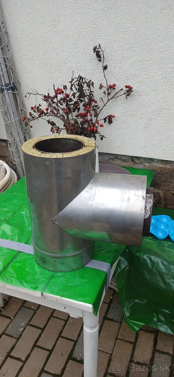 Predám T kus nerezoveho komína, dymovod 150mm, vonkajši priemer 220mm. Vyrobca, Obert Peter A sro, Hlohovec. Zapojeny bol 2 sezony. Povodna cena 180€. Predavam za 80€