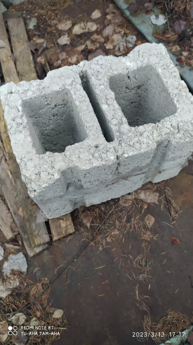 Predám betónové tvárnice z ručne rozobratej garáže. Mám 1 druh, tenkostenné(rozmery na foto) v množstve 118 kusov(cca 1 paleta, rozmery na foto, otvor je cez celú tvárnicu).
