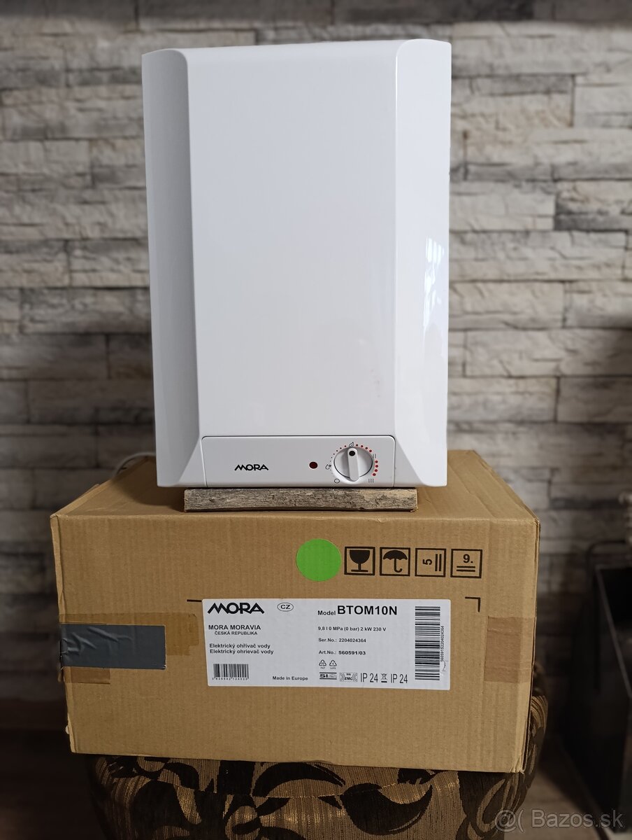 beztlakový ohrievač MORA, zásobník 10 l, montáž nad umývadlo, ovládanie nastavenia teploty vody v ohrievači do 75 ° C, jedno odberné miesto, kontrolka zahrievania, zásobník vyrobený z hygienicky nezávadného propylénu, pripojenie do rozvodu napájacej siete G 1/2. Energetická trieda: ABeztlakový ohrievač vody MORA s objemom 10 litrov sa montuje jednoducho nad umývadlo. Teplotu si nastavíte v ohrievači sami. Vhodný pre jedno odberové miesto. Obsahuje zásobník vyrobený z hygienicky nezávadného propylénu a kontrolku na zahrievanie.