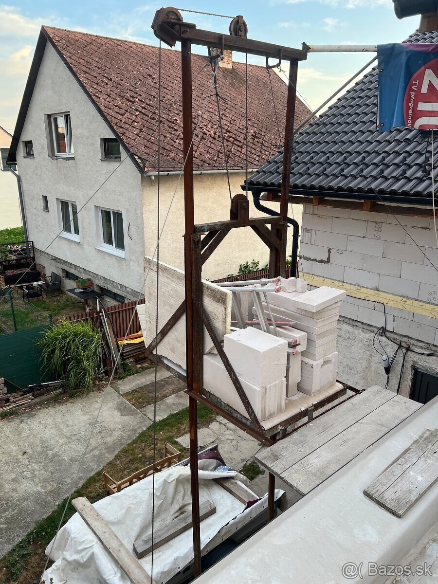 Vytah ma brzdu. Dorobene otocne rameno na navijak (bez navijaku). Zdvihne naklad do vysky 4,5m, pripadne sa daju pridat dalsie vodiace trubky a predlzit celkova vyska. Lano je dost dlhe.